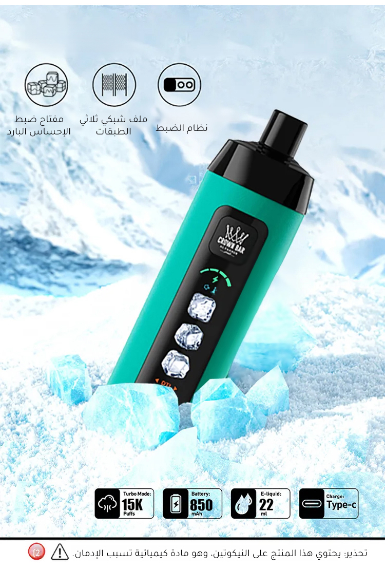 هذه السيجارة الإلكترونونية تتميز بشاشة عرض للبطارية والسائل، وشحن سريع، ونكهة باردة وحلوة ستمنحك تجربة مختلفة تمامًا!